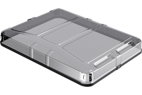 Il robusto guscio rigido della tenda da tetto è realizzato in plastica trasparente. Quando è piegata, la tenda misura circa 174 x 143 cm.